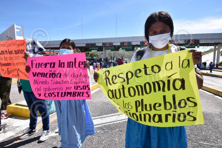 Indígenas del municipio de Ayutla de los Libres bloquearon cerca de cuatro horas la caseta de Palo Blanco para exigir respeto a su sistema de usos y costumbre, esta acción provocó molestia entre los automovilistas.
