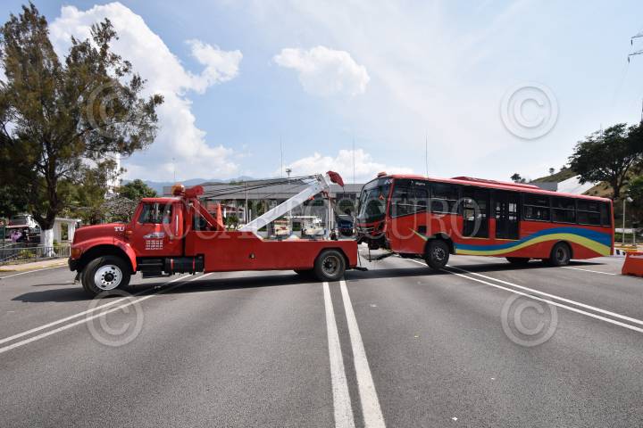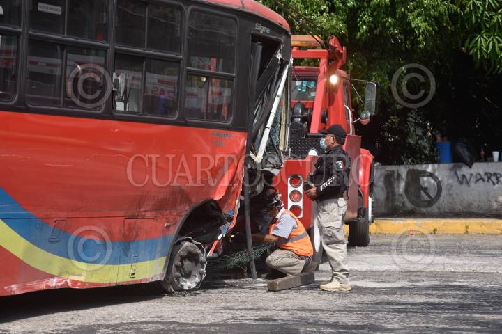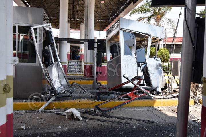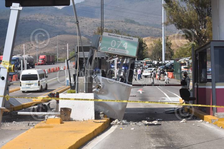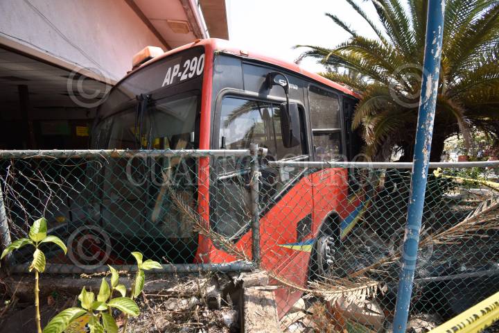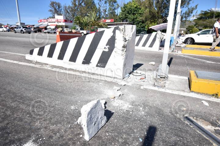 Un camión del transporte público de la línea Acabus fue robado en el puerto de Acapulco y tras una persecución fue estrellado en la caseta de peaje en Palo Blanco, sobre la Autopista del Sol, en el municipio de Chilpancingo