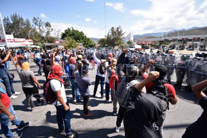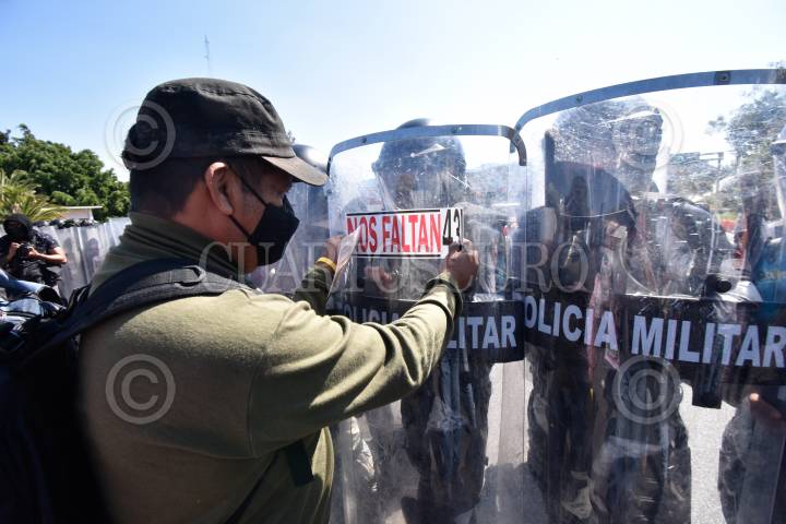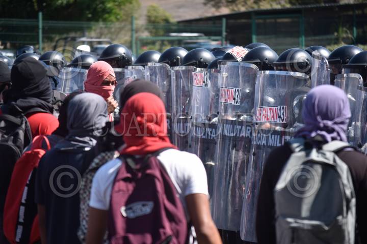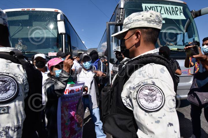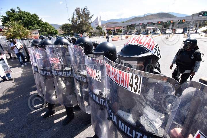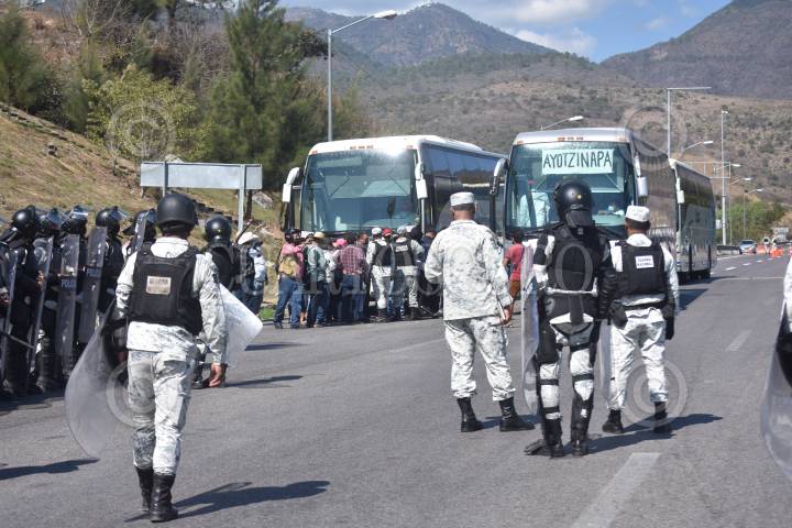 Personal de la Guardia Nacional y Policía del Estado, con equipo antimotín, tanques de gas y toletes, desplegaron un operativo coordinado en las inmediaciones de la caseta de Palo Blanco en la autopista del sol y con él impidieron que alumnos de la normal de Ayotzinapa y padres de los 43 desaparecidos de esa institución tomaran el control de la plaza de peaje como reiteradamente lo han estado haciendo.