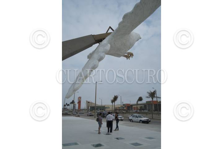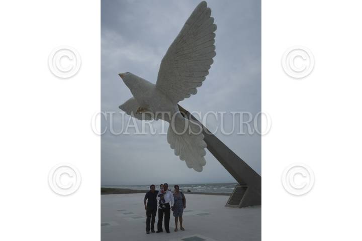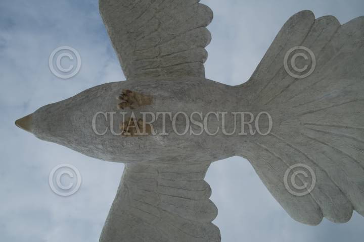 COATZACOALCOS, VERACRUZ, 30DICIEMBRE2013.- El municipio de Coatzacoalcos colocó una paloma monumental en la Plaza Espíritu Santo, en conmemoración de la fundación en 1522 de la Villa de ese nombre, "dando así inicio a nuestra historia hispánica", según dice la placa metálica colocada en el lugar. FOTO: PEDRO VALTIERRA /CUARTOSCURO.COM
