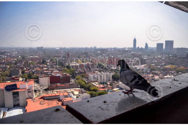 CIUDAD DE MÉXICO, 31OCTUBRE2017.- Una paloma detuvo su vuelo desde lo alto de un edificio de la ciudad, al fondo de observa la torre latinoamericana. FOTO: JUAN PABLO ZAMORA /CUARTOSCURO.COM