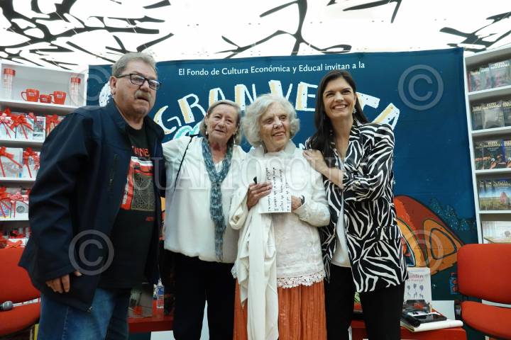 Paco Ignacio Taibo II, acompañado de su su esposa Paloma Saiz junto con la escritora Elena Poniatowska durante la Venta Nocturna de la Librería Rosario Castellanos