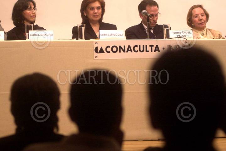 México D.F 24FEB2004.- La escritora Corral Bracho junto con Sari Bermudes, presidenta de CONACULTA, Pedro Angel Palou, escritor durante la ceremonia de entrega del premio de literatura Javier Villaurrutia. FOTO: Eunice Adorno/CUARTOSCURO.COM