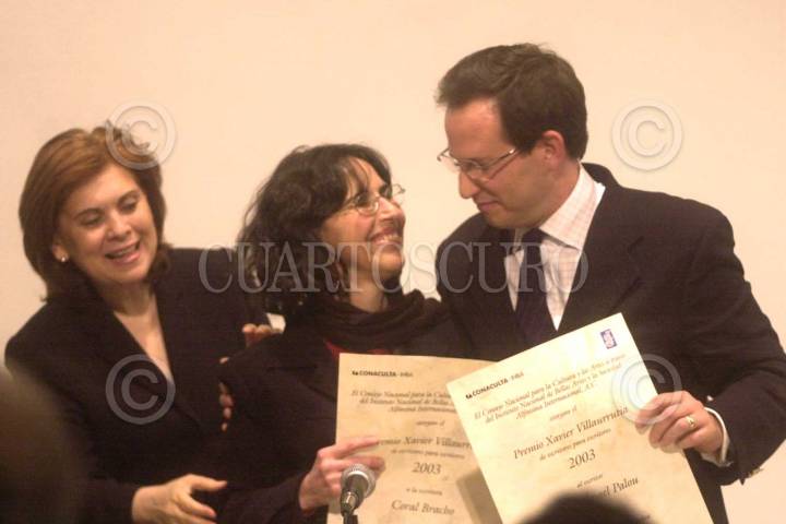 México D.F 24FEB2004.- Sari Bermudes, títular de CONACULTA entregó a los escritores Corral Bracho y Pedro Angel Palou, el premio de literatura Javier Villaurrutia. FOTO: Eunice Adorno/CUARTOSCURO.COM