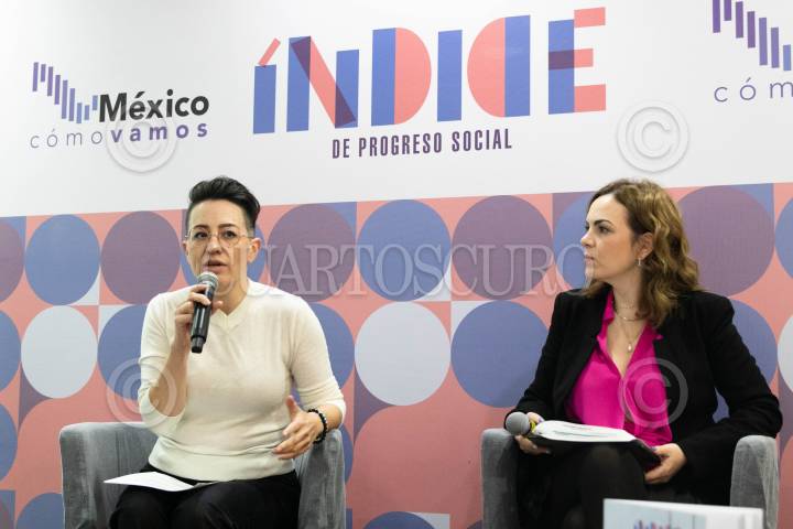 CIUDAD DE MÉXICO, 22NOVIEMBRE2023.- Sofía Isabel Ramírez Aguilar, directora general en México ¿Cómo Vamos? y Pamela Cerdeira, Cofundadora de Opinión 51, presentaron el informe "Índice Progreso Social México 2015-2022", en Casa Lamm. FOTO: MOISÉS PABLO/CUARTOSCURO.COM