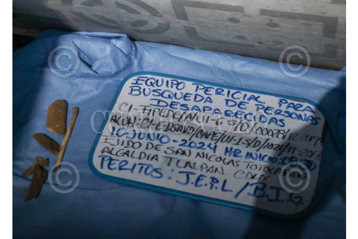Toma de fotografías de tennis encontrados en un basurero durante el primer día de la Brigada de Búsqueda de Pamela Gallardo en un perímetro del kilómetro 13 del valle del Tepozán, en el Ajusco
