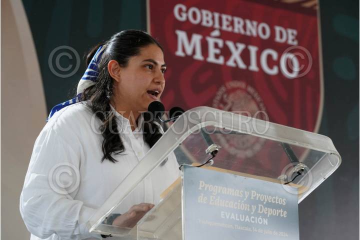YAUHQUEMEHCAN, TLAXCALA, 14JULIO2024.- Pamela López Ruiz, Directora General del Programa “La Escuela es Nuestra”; durante el evento: Evaluación de programas y proyectos de educación y deporte. FOTO: PRESIDENCIA/CUARTOSCURO.COM