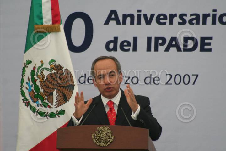 MÉXICO, D.F. MARZO2007.- El presidente Felipe Calderón visitó el Instituto Panamaericano de Alta Dirección de Empresa en su 40 aniversario. FOTO: PAOLA HIDALGO/CUARTOSCURO.COM