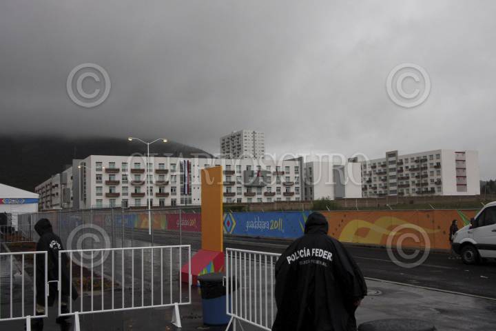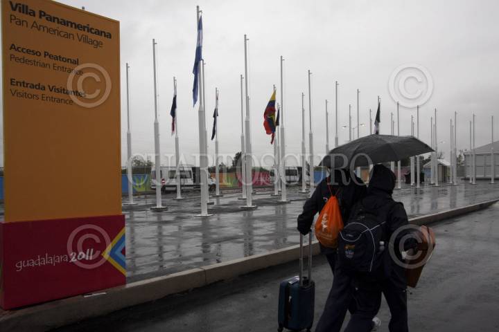 GUADALAJARA, JALISCO, 12OCTUBRE2011.- El día de hoy se cancelaron algunos eventos alusivos a los Juegos Panamericanos Guadalajara 2011, como el izamiento de banderas que se tenían contemplados en la Plaza de las Banderas de la Villa Panamericana, esto por los estragos que ocasiona el huracán "Jova", a su paso por las costas de Jalisco. FOTOS: FERNANDO CARRANZA GARCIA/CUARTOSCURO.COM