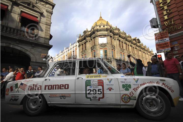 PUEBLA, PUEBLA, 20OCTUBRE2012.- Aproximadamente 120 autos que participan en la carrera panamericana, llegaron al zócalo de la ciudad de Puebla provenientes del vecino estado de Veracruz y con rumbo a Zacatecas después de 3 mil kilómetros de recorrido, por 8 estados del país. FOTO: HILDA RÍOS /CUARTOSCURO.COM