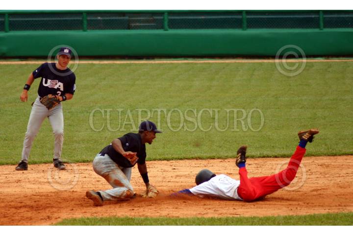 VILLAHERMOSA, TABASCO, 04SEPTIEMBRE2005.- El selectivo de beisbol de USA aventaja una carrera contra cero a la selección de Cuba, en el encuentro que disputan dentro de los Juegos Panamericano Juveniles de Beisbol, que se efectuan en el Centenario del 27 de Febrero. FOTO: Marco Polo Guzman/CUARTOSCURO.COM