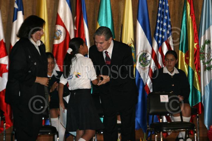 MEXICO, D.F. 29OCTUBRE2004.- Luis Ernesto Derbez saluda a los niños participantes del Congreso Panamericano del Niño, durante la clausura del mismo. FOTO: Nelly Salas/CUARTOSCURO.COM