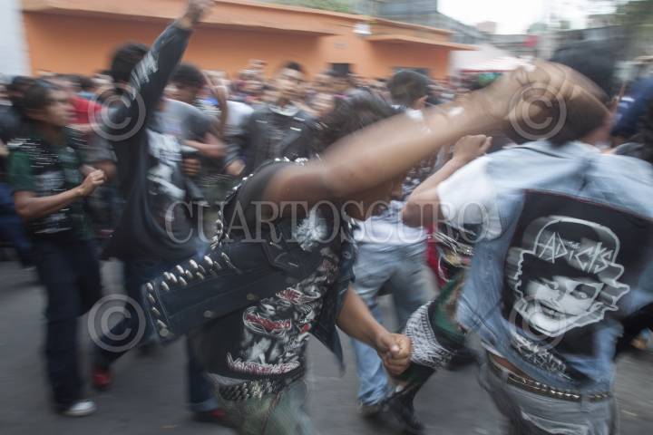 MÉXICO D.F., A 7 DE OCTUBRE DE 2007.- Decenas de jóvenes asistieron a la tocada con motivo de la celebración de los 29 años de la conformación de la Banda de los Panchitos Punk. FOTO: VICTORIA VALTIERRA/CUARTOSCURO.COM