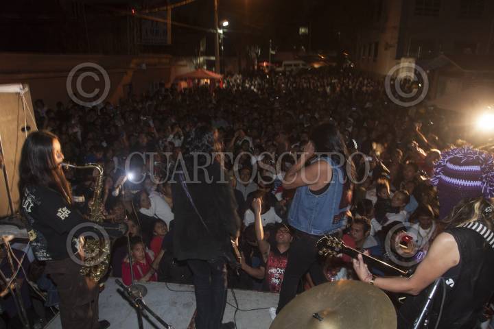 MÉXICO, D.F., 13OCTUBRE2012.- La banda de Los Panchitos, formada en 1978 y una de las bandas que asolaron la ciudad de México en los años ochenta festejaron con un toquin en calles de la zona de Tacubaya a 34 años de su fundación para escuchar a varios grupos de rock urbano. Dicha banda tenían como principal zona de influencia varias colonias de las delegaciones Alvaro Obregón, Miguel Hidalgo y Cuajimalpa. FOTO: RODOLFO ANGULO /CUARTOSCURO.COM