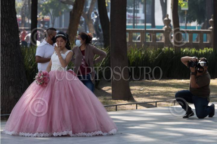 Un fotógrafo realizó una sesión fotográfica a una quinceañera a pesar de que se activó la contaminación atmosférica en la capital