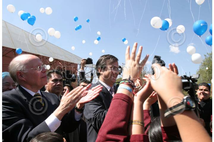 MÉXICO, D.F., 12FEBRERO2008.- José Narro Robles, Réctor de la UNAM y Marcelo Ebrard Casaubón, Jefe de Gobierno, inauguraron el Año Internacional del Paneta Tierra en el Museo de las Ciencias "Universum" de la Universidad Nacional Autonóma de México. FOTO: MOISÉS PABLO/CUARTOSCURO.COM