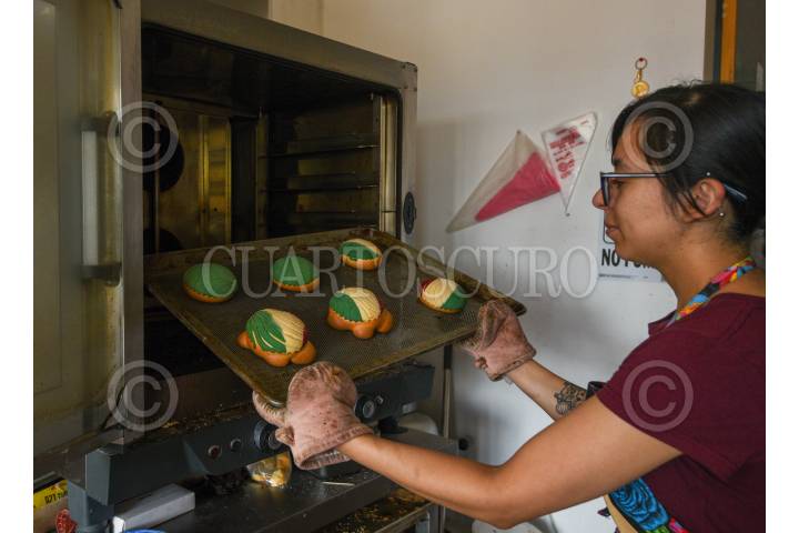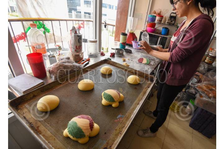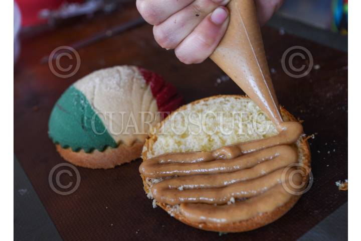 METEPEC, ESTADO DE MÉXICO, 11SEPTIEMBRE2024.- En Panetta quisieron festejar las fiestas patrias con un pan muy especial, y después de haber creado la michirosca, michimuertos y las michiconchas, Ixchel Rodríguez se puso a elaborar la tortuconcha patria, concha patria rellena de dulce de guayaba, la cactusconcha, donas rellenas de arroz con leche y churros, un postre tradicional; partiendo de la cocha como una de las piezas de pan más pedido adornándolas con los colores de la bandera de México, y dándoles el toque que solo ella puede darles, procuran tener suficientes piezas y sus clientes se han inclinado más por la tortuconcha patria por que les da ternura, y a través de sus redes sociales la gente puede realizar sus pedidos para las celebraciones patrias. FOTO: CRISANTA ESPINOSA AGUILAR /CUARTOSCURO.COM