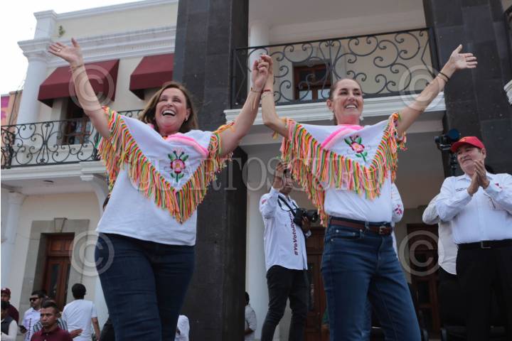 PÁNUCO, VERACRUZ, 23ABRIL2024.- Claudia Sheinbaum, candidata a la Presidencia de la República por la coalición Sigamos Haciendo Historia, y Rocío Nahle, candidata a la gubernatura por la coalición Sigamos Haciendo Historia, encabezaron un mitin con simpatizantes. Ahi la.aspirante a encabezar los rumbos del país prometió hacer una carretera de Pánuco a Tampico. FOTO: PRENSA CLAUDIA SHEINBAUM/CUARTOSCURO.COM