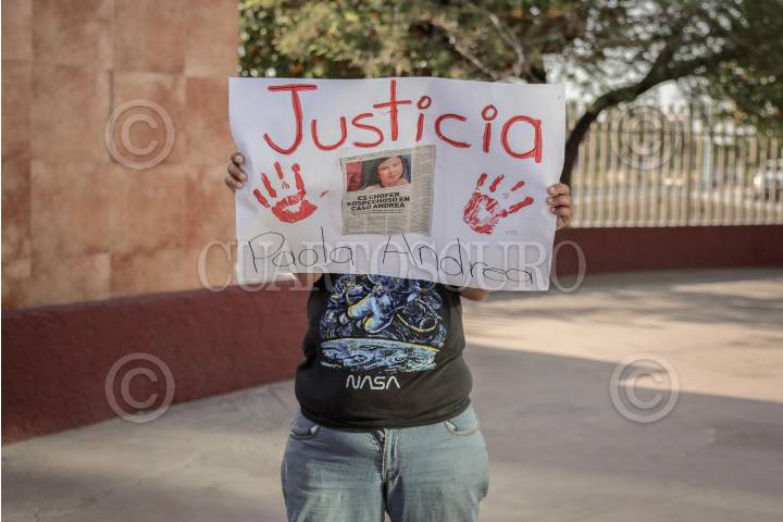 MEXICALI, BAJA CALIFORNIA, 12JULIO2024.-Persona sostiene entre sus manos un cartel con la frase "Justicia Paola Andrea". Escoltado por un convoy táctico, ingresa al edificio de la Fiscalía General de Baja California Sergio Daniel "N" por cargos de violencia de género, para luego ser trasladado a la prisión preventiva de Mexicali. El día de mañana 13 de julio se programó la audiencia sobre el caso del feminicidio de Paola Andrea, joven mexicalense víctima de feminicidio tras abordar un DiDi la madrugada del lunes 8 julio. FOTO: JACK ALVAREZ/CUARTOSCURO.COM