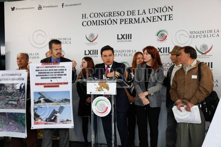 CIUDAD DE MÉXICO, 19JULIO2017.- El senador Zoé Robledo ofreció una conferencia de prensa junto con la diputada Paola Félix Díaz, para solicitar a la Secretaría de Comunicaciones y Transportes (SCT) que pare la construcción del tren interurbano México-Toluca FOTO: CUARTOSCURO.COM