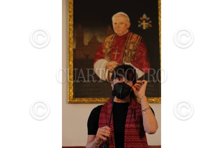Paola Félix Díaz durante la rueda de prensa para dar a conocer diversos recorridos turísticos por la Catedral Metropolitana por los festejos del Día de los Muertos.