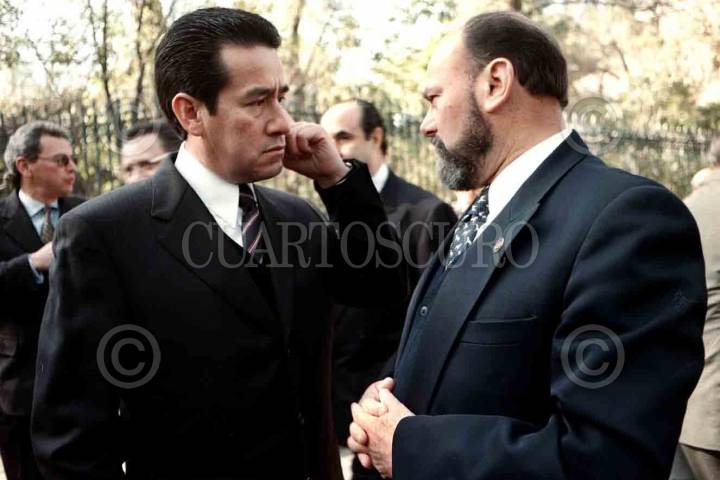 El secretario de Gobernación Diódoro Carrasco y el diputado panista Francisco José Paoli Bolio al término de la ceremonia conmemorativa de la Marcha de la Lealtad.