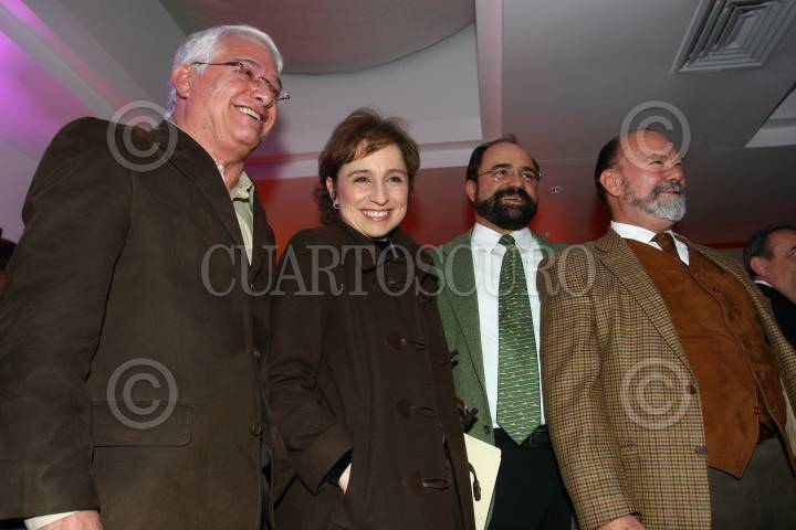 MÉXICO, D.F., 14ENERO2009.- Virgilio Caballero Carmen Aristegui, Emilio Alvarez Icaza y Francisco Paoli Bolio se toman la foto, durante el cocktail con motivo de su regreso de Carmen Aristegui a la radio, en el 102.5 de MVS noticias. FOTO: SAÚL LÓPEZ/CUARTOSCURO.COM