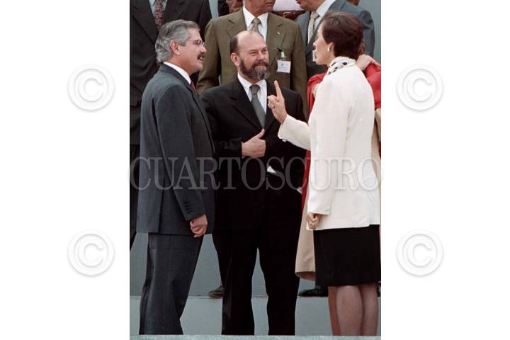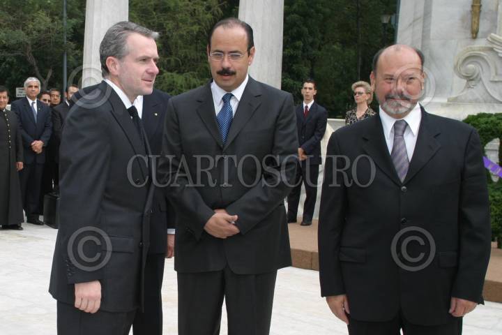 México, D. F. 18 Julio 2004.- Santiago Creel, secretario de gobernación conversa con Armando Salinas Torres, subsecretario de gobernación y José Paoli, previo a la ceremonia del aniversario luctuoso de Benito Juárez. FOTO: Nelly Salas/CUARTOSCURO.COM