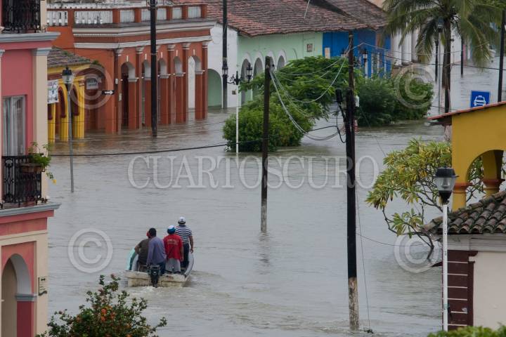 TLACOTALPAN, VERACRUZ, 05SEPTIEMBRE2010.- La ciudad de Tlacotalpan fue desalojada por las inundaciones que han provocado las intensas lluvias y que han azotado esta región del país, ya que se prevé el aumento del caudal del río Papaloapan. FOTO: GUILLERMO PEREA/CUARTOSCURO.COM