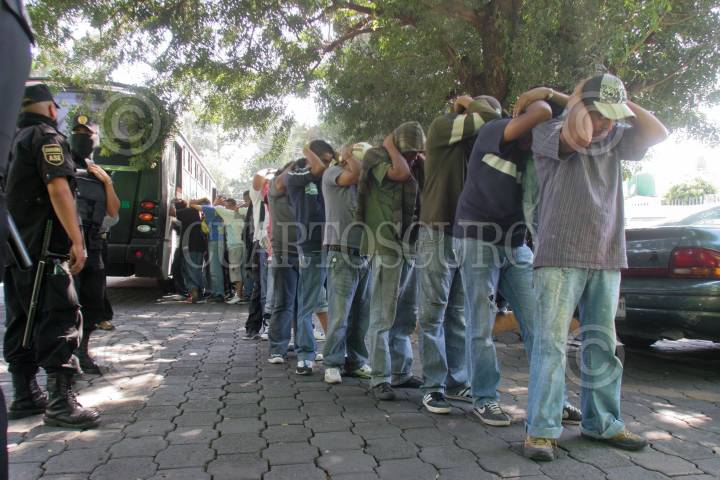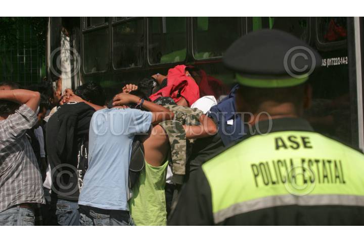 TEPETLAOXTOC, ESTADO DE MÉXICO, 26OCTUBRE2010.- Elementos de la Agencia de Seguridad Estatal detuvieron a 63 personas después de que dos grupos rivales se enfrentaran a golpes durante un desalojo de un predio de 22 hectáreas de en la comunidad de Santiago Papalotla, entre los detenidos hay 23 menores edad y una mujer. FOTO: SAÚL LÓPEZ/CUARTOSCURO.COM