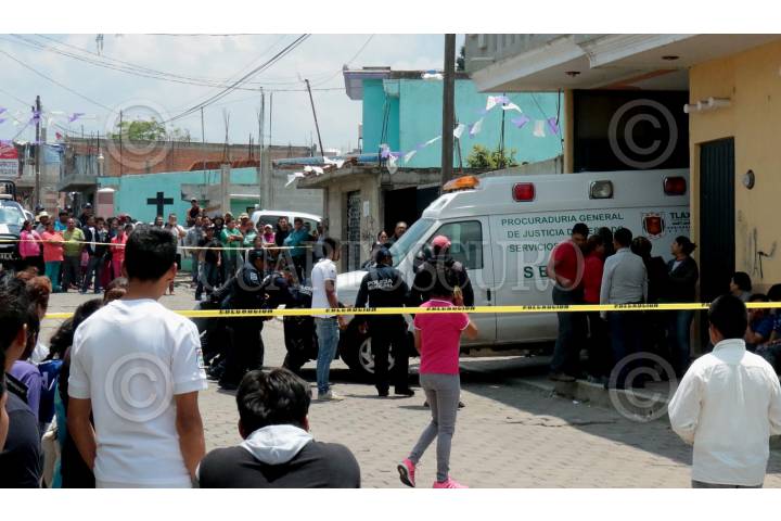 PAPALOTLA, TLAXCALA, 24ABRIL2016.- En lo que las autoridades presumen como una asalto a una casa fueron asesinadas tres personas; padre, madre e hijo, sus cuerpos fueron hallados en el domicilio, ubicado en calle Benito Juárez esquina con calle Pablo L Sidar número 13 del Barrio de Xolalpa. Por la madrugada vecinos reportaron una serie de balazos, por lo que policías municipales acudieron a las inmediaciones de la calle mencionada, sin encontrar nada, fue hasta la mañana que un familiar de las víctimas entro a la casa y descubrió el múltiple homicidio. FOTO: JORGE LEZAMA /CUARTOSCURO.COM