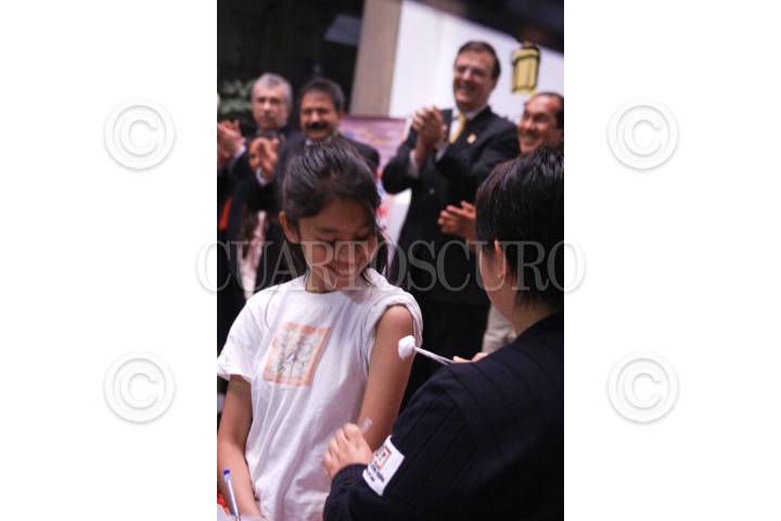 MÉXICO, D.F., 18JUNIO2009.- Marcelo Ebrard jefe de gobierno capitalino inicio la etapa numero dos de la aplicación de la vacuna del papiloma humano, esta vacuna se aplicara aniñas que estén entre los 10 y 11 años y serán aplicadas en todos los Centros de Salud de la capital. FOTO: RICARDO CASTELAN/CUARTOSCURO.COM
