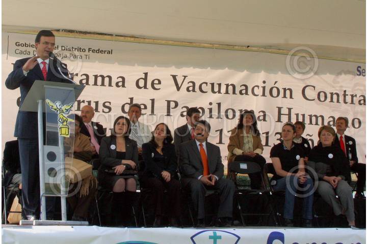 MÈXICO, D.F., 01DICIEMBRE2008.- Armando Ahued secretario de Salud del D.F. junto a Marcelo Ebrard Casaubon jefe de Gobierno Capitalíno, dieron inicio a las Campañas de Vacunación en contra del Virus del Papiloma Humano. Este virus cancerigeno , afecta principalmente a las Mujeres, por lo cual la vacuna sera implementada sobre jóvenes Mujeres de 11 a 13 años. FOTO: COSME RADA/CUARTOSCURO.COM