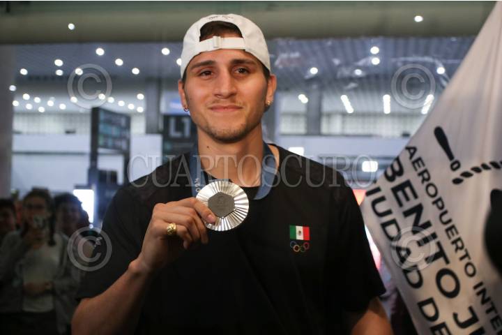 CIUDAD DE MÉXICO, 12AGOSTO2024.- Emiliano Hernández deportista en París 2024 a su llegada a la Ciudad en el AICM. FOTO: ANDREA MURCIA /CUARTOSCURO.COM