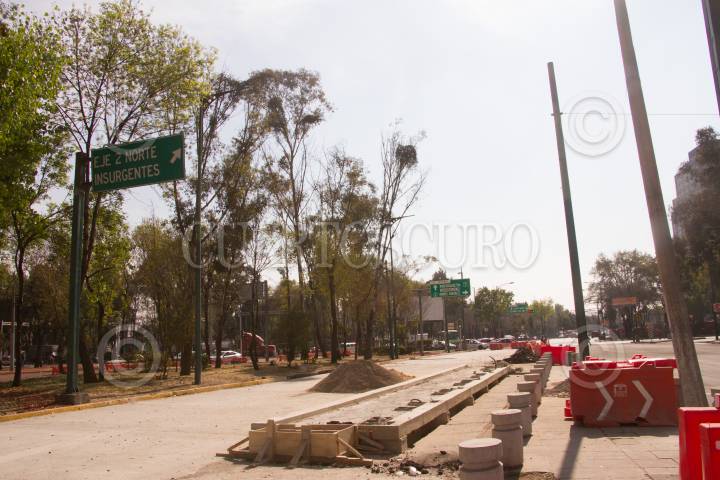 CIUDAD DE MÉXICO, 20DICIEMBRE2017.- Avanzan poco a poco, los trabajos de la construcción de la linea del Metrobus en Paseo de la Reforma. FOTO: VICTORIA VALTIERRA /CUARTOSCURO.COM