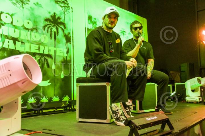 CIUDAD DE MÉXICO. 16JULIO2025.- Julio y Chirola, integrantes del grupo Paraguayo, Kchiporro, en conferencia de prensa se encuentran promocionando su álbum "Todo el mundo está Kaliente". FOTO: VICTORIA VALTIERRA/CUARTOSCURO.COM