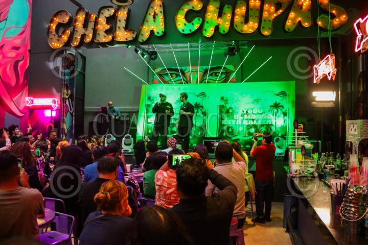 CIUDAD DE MÉXICO. 16JULIO2025.- Chirola y Julio, ambos de la banda Kchiporro, se encuentran de promoción de su reciente producción, "Todo el Mundo está Kaliente", en un conocido bar de la colonia Roma. FOTO: VICTORIA VALTIERRA/CUARTOSCURO.COM