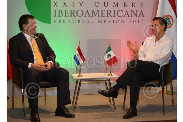 VERACRUZ, VERACRUZ, 09DICIEMBRE2014.- El presidente de Paraguay, Horacio Cartes, sostuvo un encuentro bilateral con Enrique Peña Nieto, en el marco de la XXIV Cumbre Iberoamericana, celebrada en el estado de Veracruz. FOTO: PRESIDENCIA /CUARTOSCURO.COM