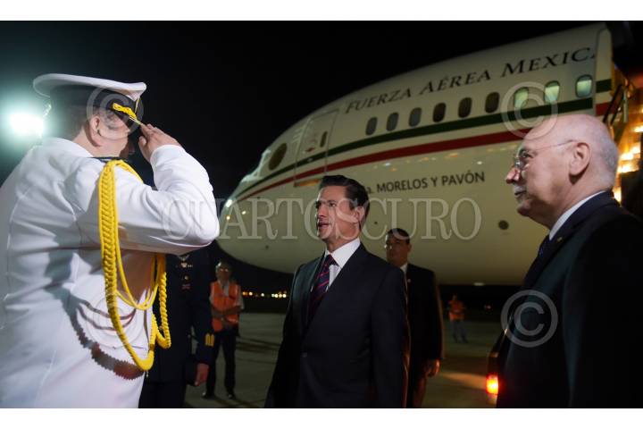 ASUNCIÓN, PARAGUAY, 17ENERO2018.- El Presidente de la República, Enrique Peña Nieto, arribó esta noche al Aeropuerto Internacional Silvio Pettirossi de la Ciudad de Asunción, para realizar una Vista Oficial. Fue recibido por el Embajador Eladio Loizaga, Ministro de Relaciones Exteriores del Paraguay. FOTO: PRESIDENCIA /CUARTOSCURO.COM