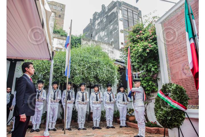 ASUNCIÓN, PARAGUAY, 18ENERO2018.- Asunción, Paraguay, 18 de enero de 2018.- Como parte de las actividades de la Visita Oficial que realiza a esta nación, el Presidente Enrique Peña Nieto depositó una ofrenda floral a los héroes del Paraguay en la Casa de la Independencia. FOTO: PRESIDENCIA /CUARTOSCURO.COM