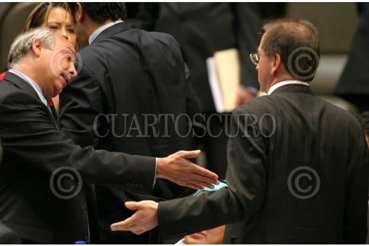 MÉXICO, D.F., 20MARZO2007.- Los diputados Juan Manuel Paras González y Manuel Cárdenas, durante la sesión en la Cámara de Diputados en la que se espera se le de lectura a la iniciativa de reforma de la Ley del ISSSTE. FOTO: MOISÉS PABLO/CUARTOSCURO.COM