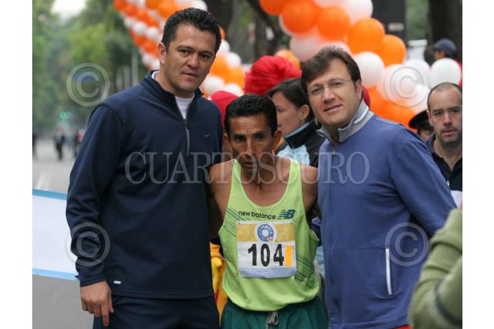 MEXICO, D.F. 04MARZO2007.- Benjamin Pardes ganador del primer lugar de la carrera de 10 kilometros, se toma una fotografia con Carlos Hermosillo titular de la CONADE y el presidente del consejo de la comunicación al termino de la competencia. FOTO: NELLY SALAS/CUARTOSCURO.COM