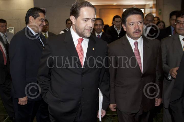 MÉXCO, D.F., 28SEPTIEMBRE2011.- Luis González Plascencia, presidente de la Comisión de Derechos Humanos; el ministro Jorge Mario Pardo Rebodello y el senador Carlos Navarrete a su llegada a la inauguración del foro Reforma Penitenciaria y Arraigo, Acciones Urgentes Frente a la Reforma Constitucional en Derechos Humanos que se realizo en el Senado de la República. FOTO: RODOLFO ANGULO/CUARTOSCURO.COM