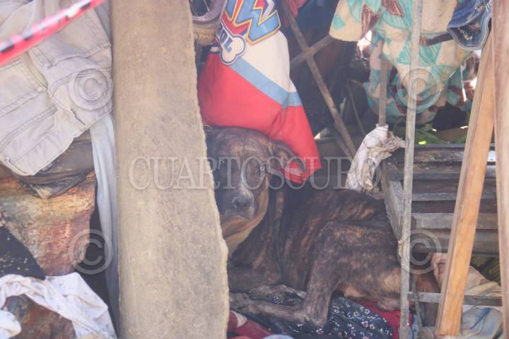 JIUTEPEC, MORELOS, 31AGOSTO2024.- La fuerte tormenta de la madrugada de este día ocasionó que un paredón se viniera abajo, sepultado dos humildes casas, donde lamentablemente tres niñas de 2, 5 y 7 años fallecieron. Los hechos ocurrieron en la colonia Jardín Juárez, también tres hombres y una mujer resultaron lesionados. Según información de algunos habitantes de la zona, aproximadamente a las tres de la madrugada el escombro y tierra sepultó la pequeña habitación hecha de lámina, cartón, polines, plástico y algunos tabiques. Los vecinos ayudaron a rescatar a la familia sin embargo las menores quedaron atrapadas. En los trabajos de rescate participó personal de Protección Civil, Bomberos, del Ejército Mexicano, Guardia Nacional, Comisión Estatal de Seguridad (CES), Escuadrón de Rescate y Urgencias Médicas (ERUM), Cruz Roja Mexicana así como Protección Civil del municipio y agentes policíacos. Otras tres casas edificadas en la zona presentan riesgo, por lo que se habilitó un albergue para esas familias ya que se pronostican más lluvias en las próximas horas. En la imagen, un perro se niega a salir de entre los escombros de la vivienda afectada. FOTO: MARGARITO PÉREZ RETANA/CUARTOSCURO.COM