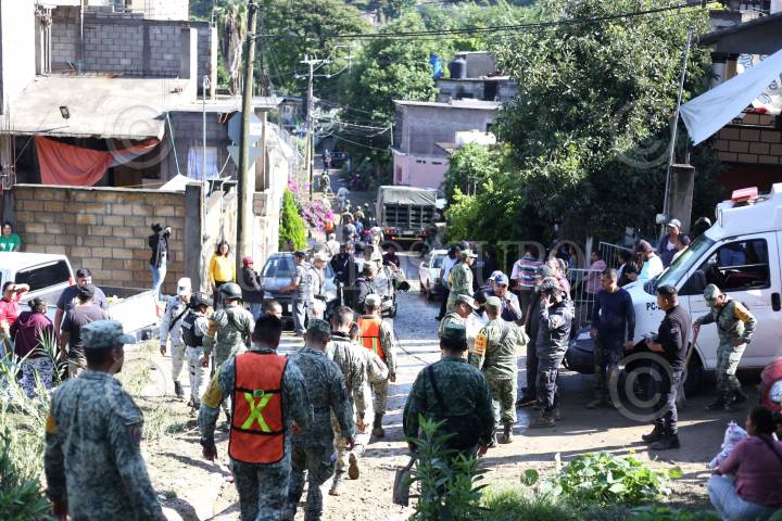 JIUTEPEC, MORELOS, 31AGOSTO2024.- La fuerte tormenta de la madrugada de este día ocasionó que un paredón se viniera abajo, sepultado dos humildes casas, donde lamentablemente tres niñas de 2, 5 y 7 años fallecieron. Los hechos ocurrieron en la colonia Jardín Juárez, también tres hombres y una mujer resultaron lesionados. Según información de algunos habitantes de la zona, aproximadamente a las tres de la madrugada el escombro y tierra sepultó la pequeña habitación hecha de lámina, cartón, polines, plástico y algunos tabiques. Los vecinos ayudaron a rescatar a la familia sin embargo las menores quedaron atrapadas. En los trabajos de rescate participó personal de Protección Civil, Bomberos, del Ejército Mexicano, Guardia Nacional, Comisión Estatal de Seguridad (CES), Escuadrón de Rescate y Urgencias Médicas (ERUM), Cruz Roja Mexicana así como Protección Civil del municipio y agentes policíacos. Otras tres casas edificadas en la zona presentan riesgo, por lo que se habilitó un albergue para esas familias ya que se pronostican más lluvias en las próximas horas. FOTO: MARGARITO PÉREZ RETANA/CUARTOSCURO.COM