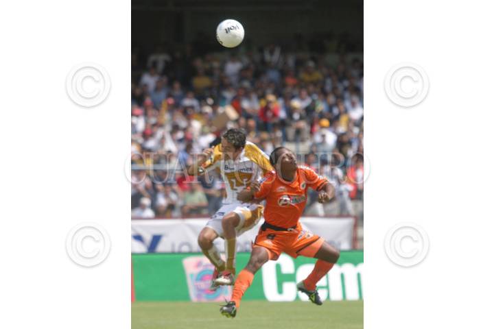 MEXICO, D.F. 15OCTUBRE2006.- El parejita López se disputa un balón con un jugador de la UAG. Con marcador Pumas 2-0a favor de los Pumas en el estadio Olimpico de Ciudad Universitaria. FOTO: NELLY SALAS/CUARTOSCURO.COM
