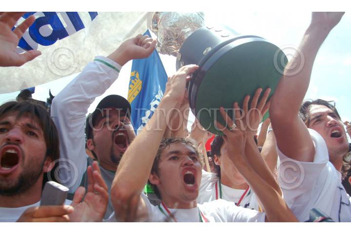 MÉXICO D.F. 12JUNIO2004.- Los pumas de la UNAM se coronaron como campeones del torneo de apertura 2004 del futbol mexicano tras vencer en tiros penales 5-4 a las Chivas Rayadas del Guadalajara. Jose Luis "Parejita" López levanta la copa del camponato. FOTO: Iván Stephens/CUARTOSCURO.COM