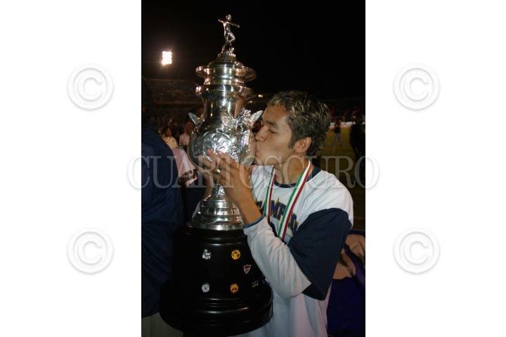 MONTERREY, NUEVO LEON11DICIEMBRE2004.- Jose Luis Parejita López besó la copa del bicampeonato que obtuvieron los pumas al vencer a los rayados del monterrey en el torneo de apertura 2004. FOTO: Jorge López/CUARTOSCURO.COM