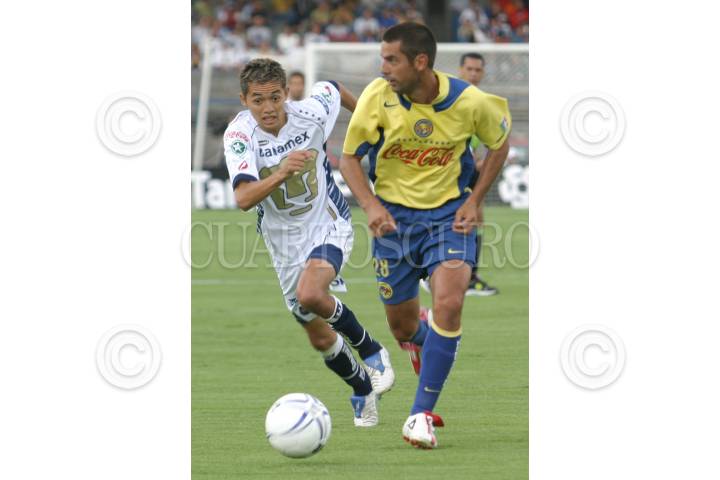 México D. F. ENERO 2004.- José Luis el Parejita López (Pumas) y José Mendoza (América), durante su encuentro en el Estadio Azteca. FOTO: Sandra Perdomo/CUARTOSCURO.COM