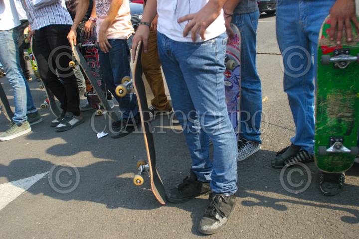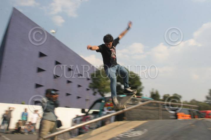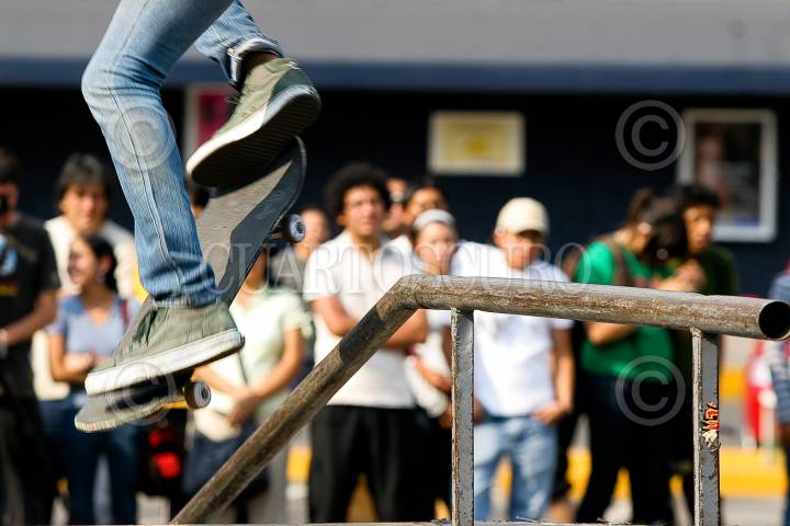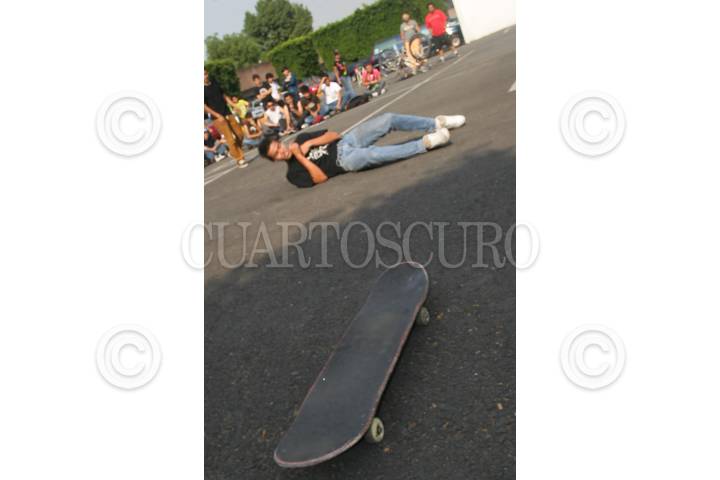 MÉXICO D.F., 07ABRIL2008.- Jovenes patinadores realizarón una exhibicion de sus mejores trucos en patineta, en la explanada de la cineteca nacional, previo a la premier de la pelicula Paranoid Park. FOTO: SAÚL LÓPEZ/CUARTOSCURO.COM